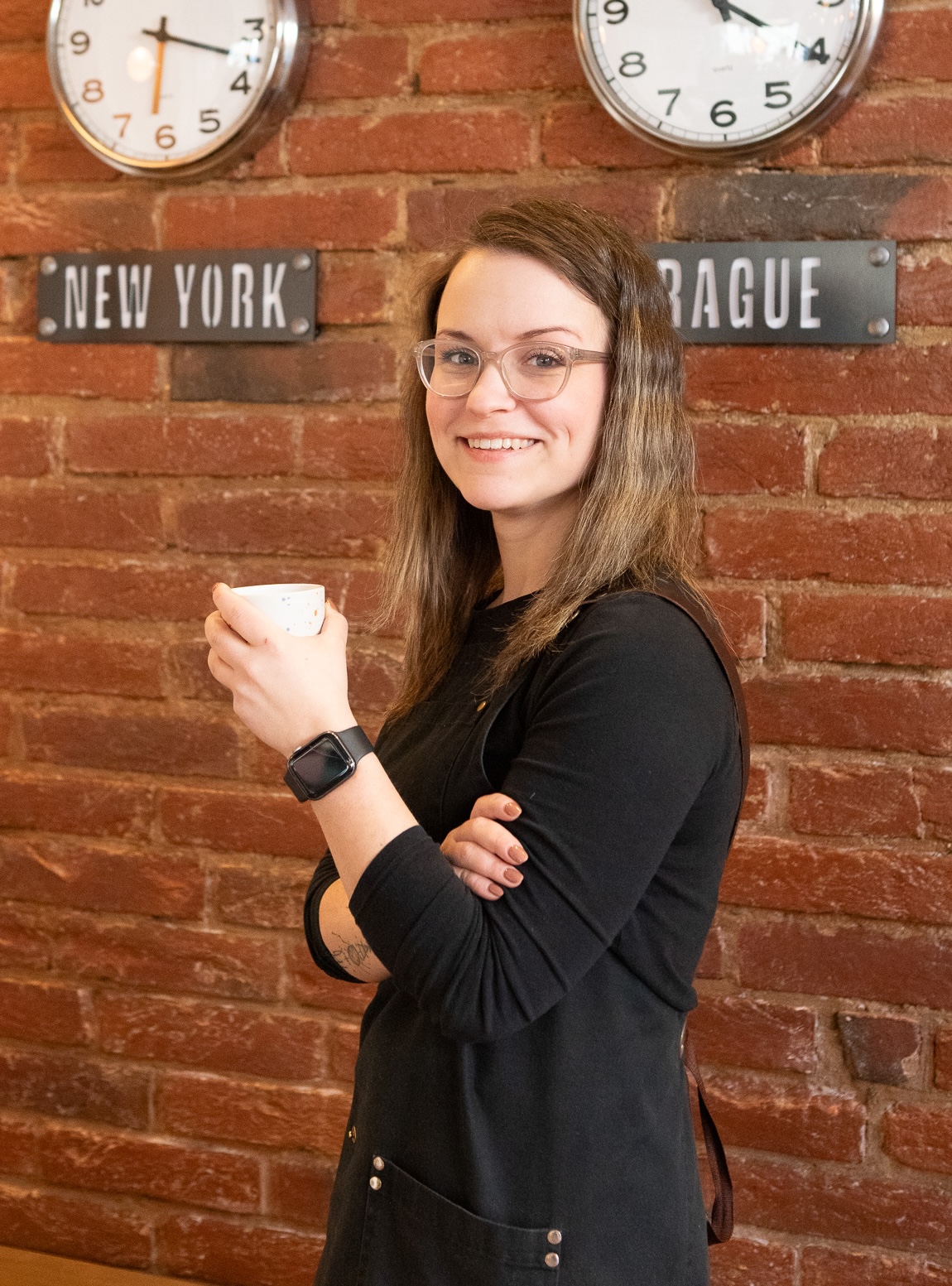Favorite coffee? It depends on her mood and the weather. An oat flat white or a filter. The reason is simple: “Coffee is love.” In Pankrác, that motto hardly needs explaining.